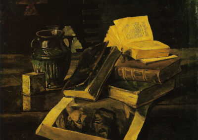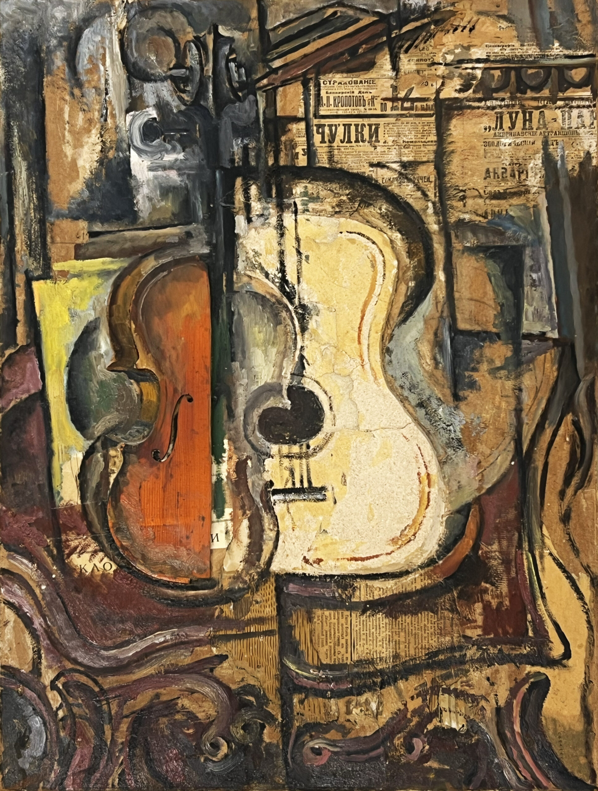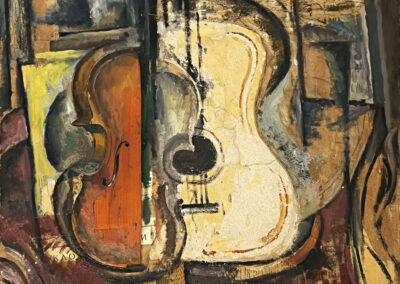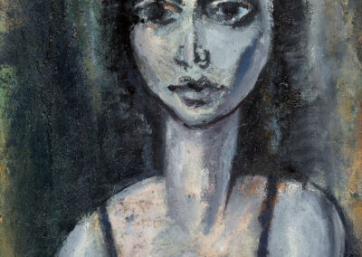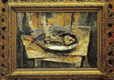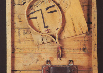 Varazi, a professional architect and art historian, emerged in Georgian painting with a non-conformist position that completely ignored the false pathos of Social Realism. The drama of his portraits is motivated by real feelings experienced by specific characters, contrary to the imitation of happiness that was preached by the ideology of Social Realism. Varazi’s work offers an interesting reflection of his time and the visual parameters of the epoch, making the melancholic model of his work resemble Italian neorealist cinema and its sugarcoated reality, entourage, mood, style, and specific character of framing and color. The bluish tones of the portraits that were produced under the influence of Picasso’s early period were later replaced by the muted colors of Italian Neorealism. His still lives, collages and pop art works are assembled with the application of a combination of certain types of objects, the coexistence of which create unexpected events, where the image is awarded the status of a new “object”. These “neo-avant-garde” objects are imbued with a desire to destroy, disintegrate and create a fresh reality. In Georgian painting they represent a new aesthetic code. Varazi is responsible for the introduction of different issues and images to Georgian art, reflecting real events.
